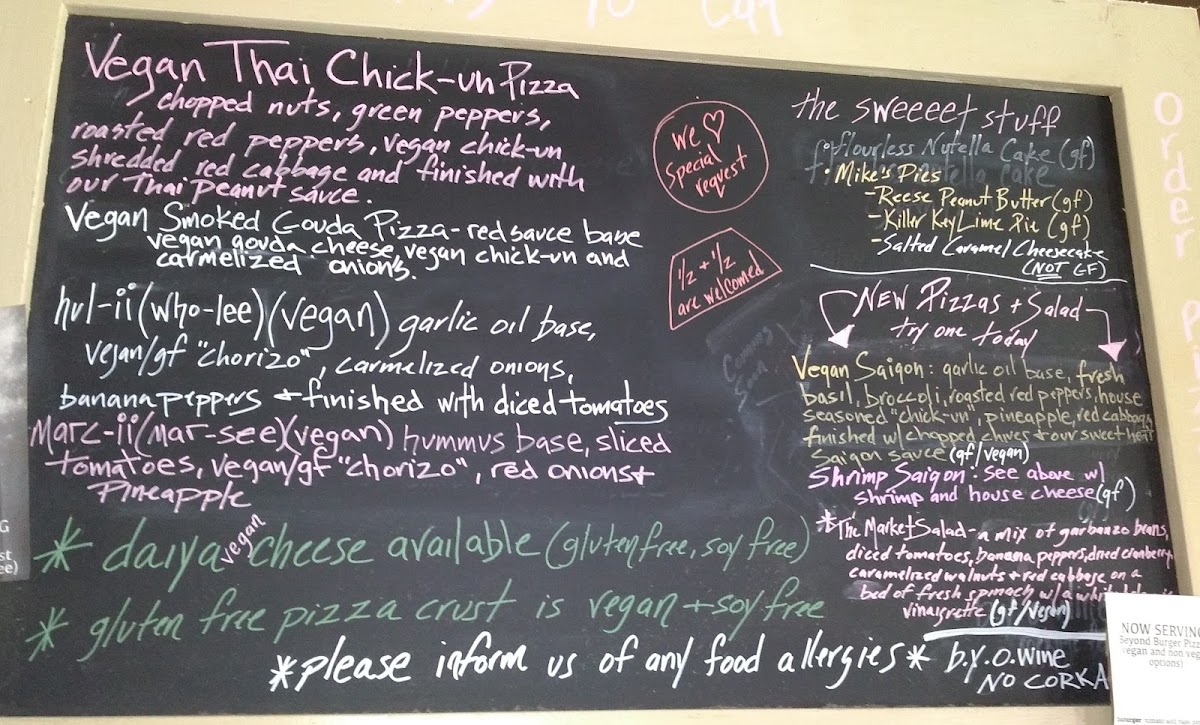 Designed by @thebodybuildingvegan John Thomas! house-made Red Sauce base, Light Vegan Mozzarella, White Onions, Beyond Burger, Vegan Pepperoni, Pesto Aoili drizzle.
