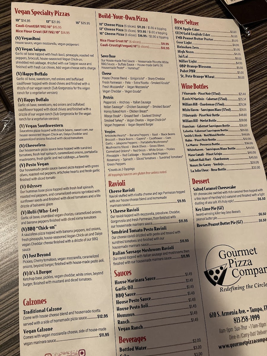 Our pizza sauce base topped with provolone, mozzarella, sharp Cheddar, age Parmesan, and Gorgonzola cheese