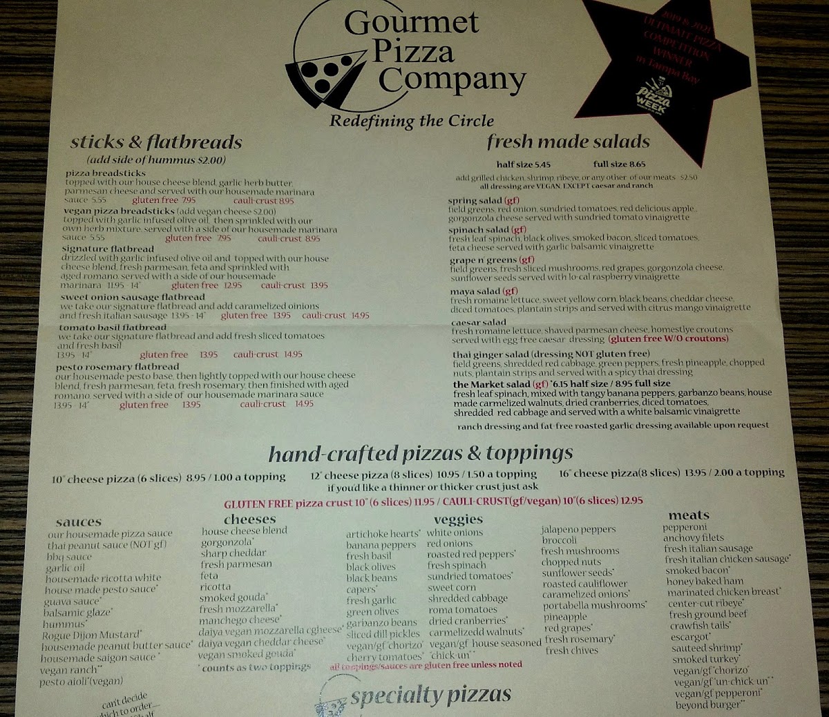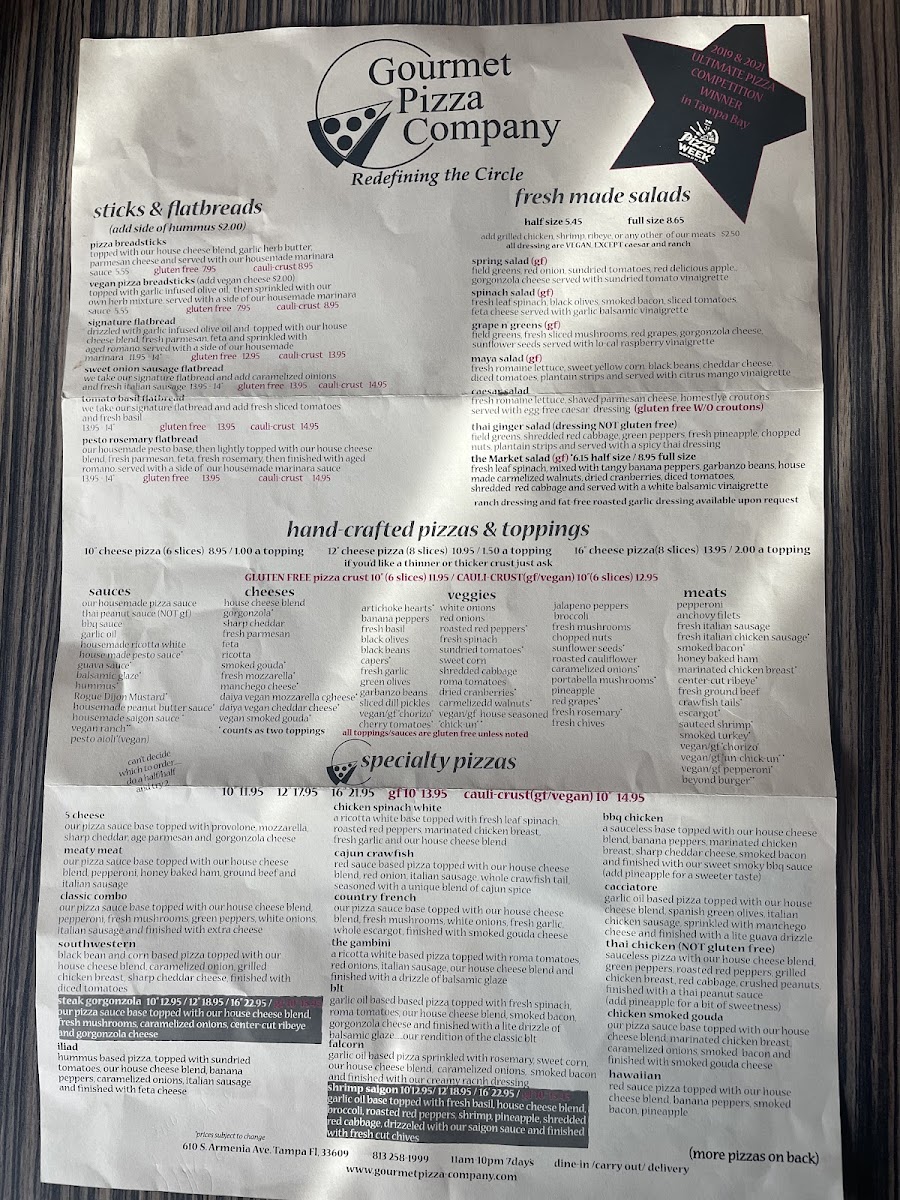 Our house pizza sauce base topped with sundried tomatoes, fresh leaf spinach, caramelized onions, fresh mushrooms, fresh roasted garlic, and red cabbage