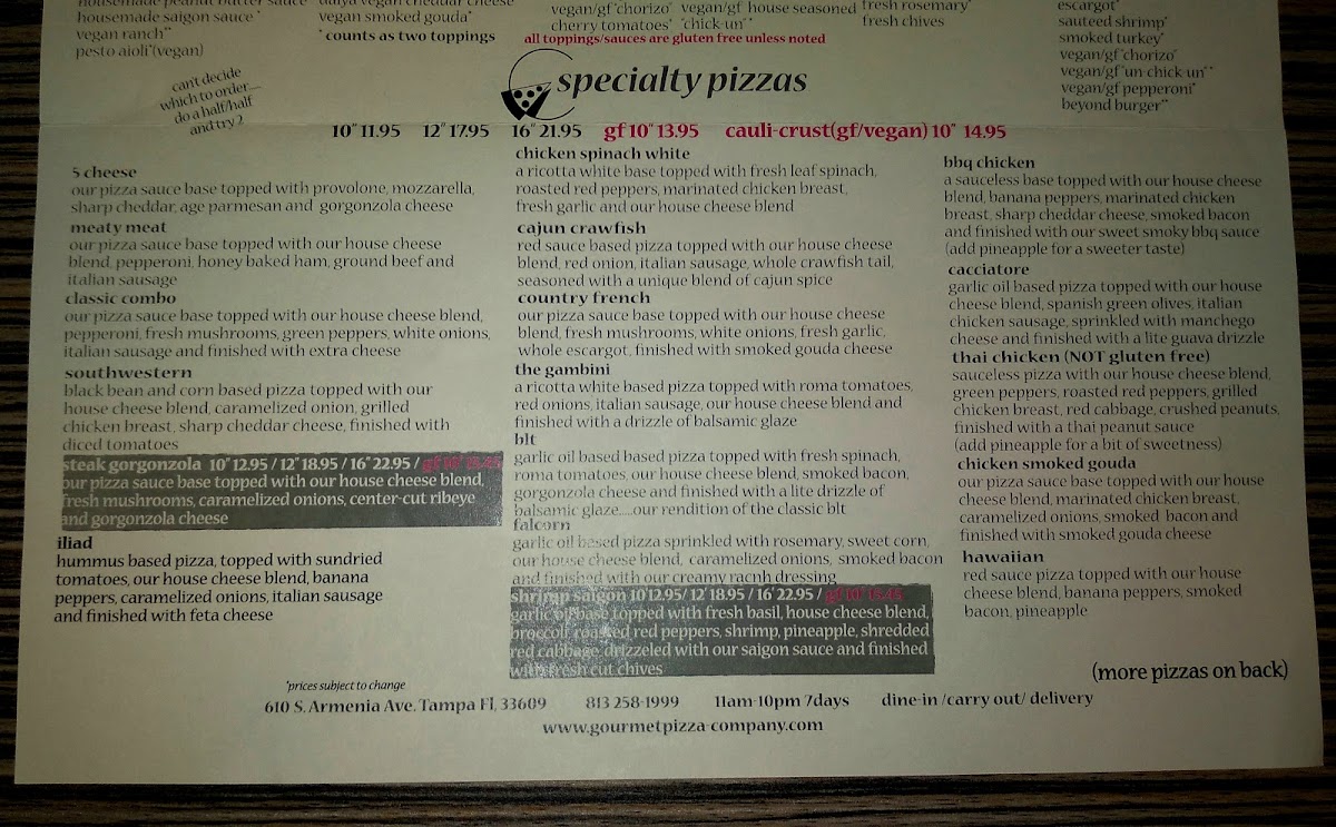 Alfredo sauce base, Spinach, House Cheese, Fresh Roasted Garlic, Mushrooms, Caramelized Onions, Fresh Italian Sausage, topped with Smoked Gouda Cheese